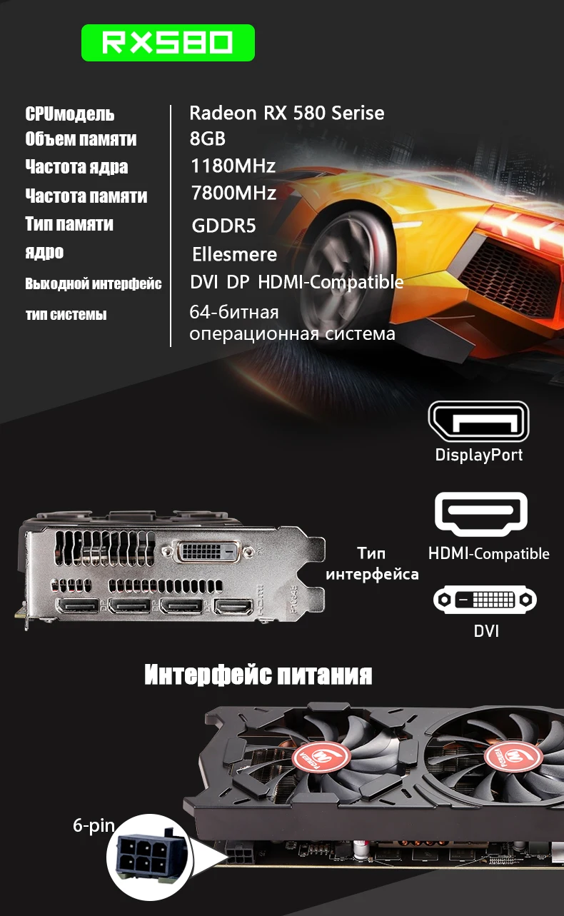 • 100% натуральная 8 ГБ GDDR5 256 бит