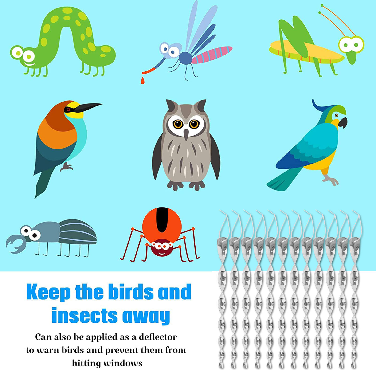 12 упаковок отпугиватель птиц для украшения птиц Светоотражающие спиральные стержни репеллент
