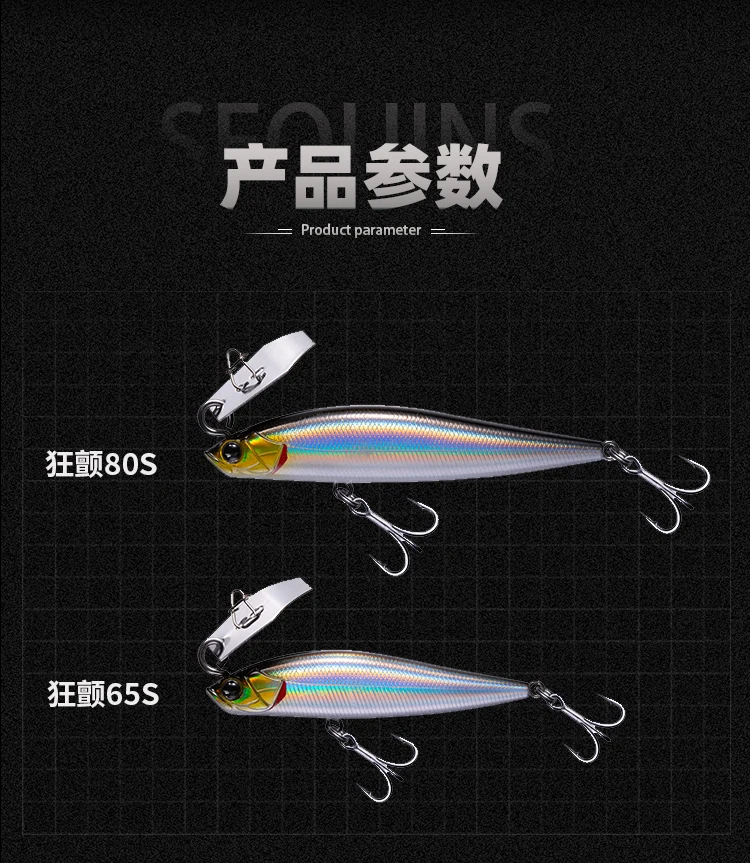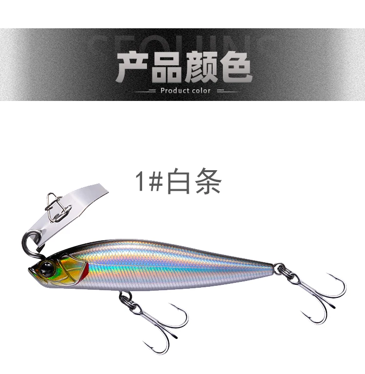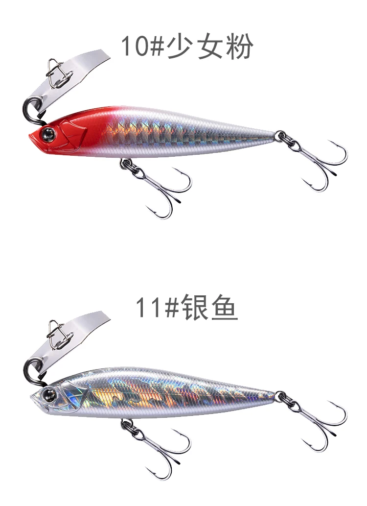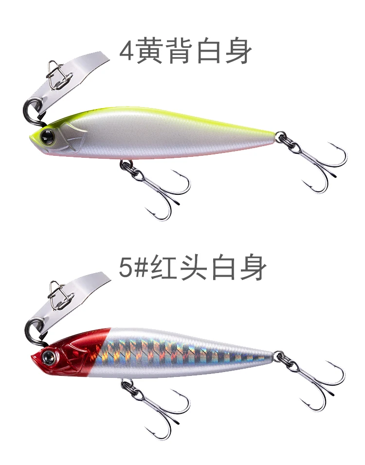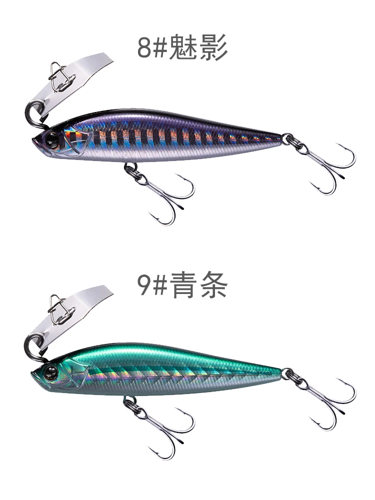 Прорвав традиционную концепцию дизайна, сочетающую дефлектор воды с погруженным карандашом, Оптимизированный дизайн жидкости тела приманки, медленная намотка может представить непревзойденный высокочастотный треморский стиль традиционного погруженного карандаша.