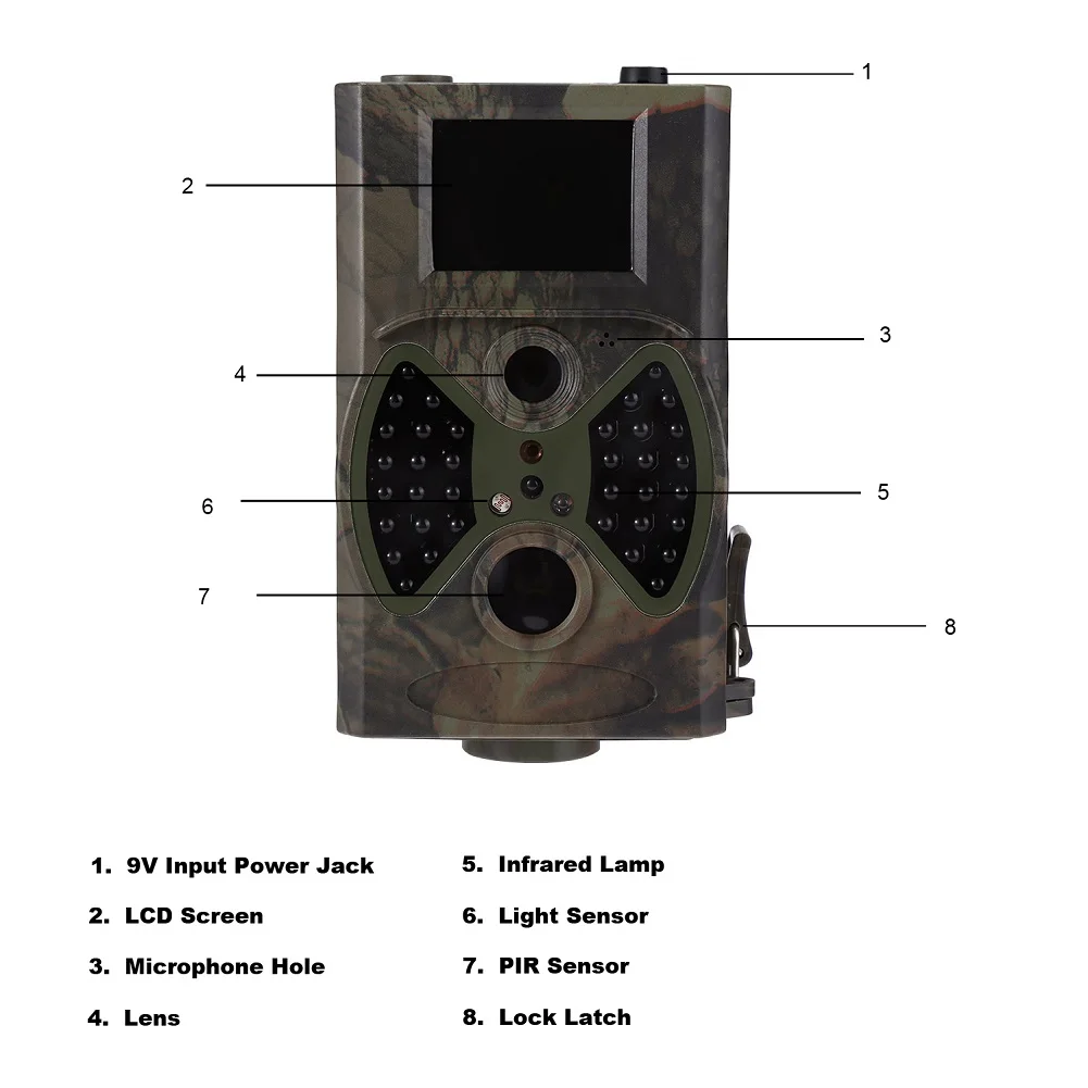 1. Он может быть срабатывает сразу любым движением человека (или животных) в определенном регионе заинтересованного (ROI) контролируется высокочувствительным пассивным инфракрасным (PIR) датчиком движения, И затем автоматически фиксирует изображения высокого качества (до 12 пикселей) или записывает hd-видео.