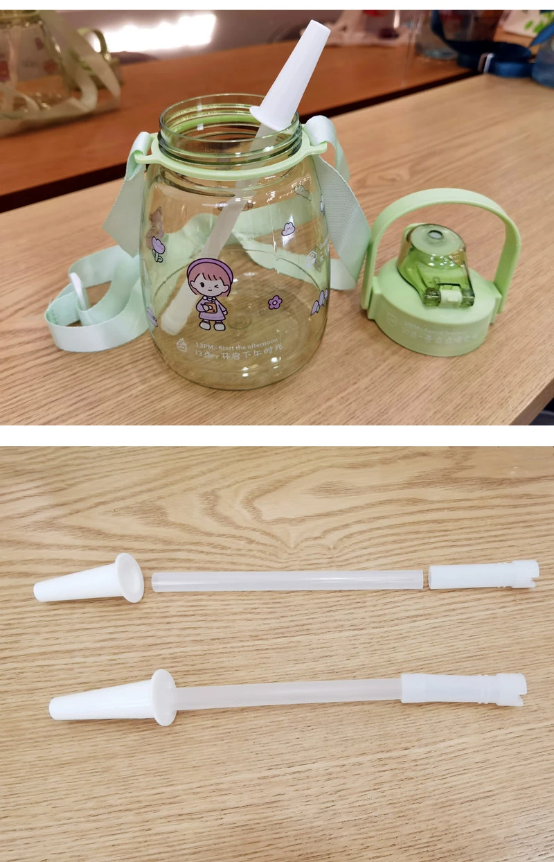 Категория продукта: спортивная бутылка Цвет: белый, розовый, зеленый Материал: Поликарбонат Стиль: милый, спортивный время выхода на рынок: Лето 2021 Емкость: 1100 мл