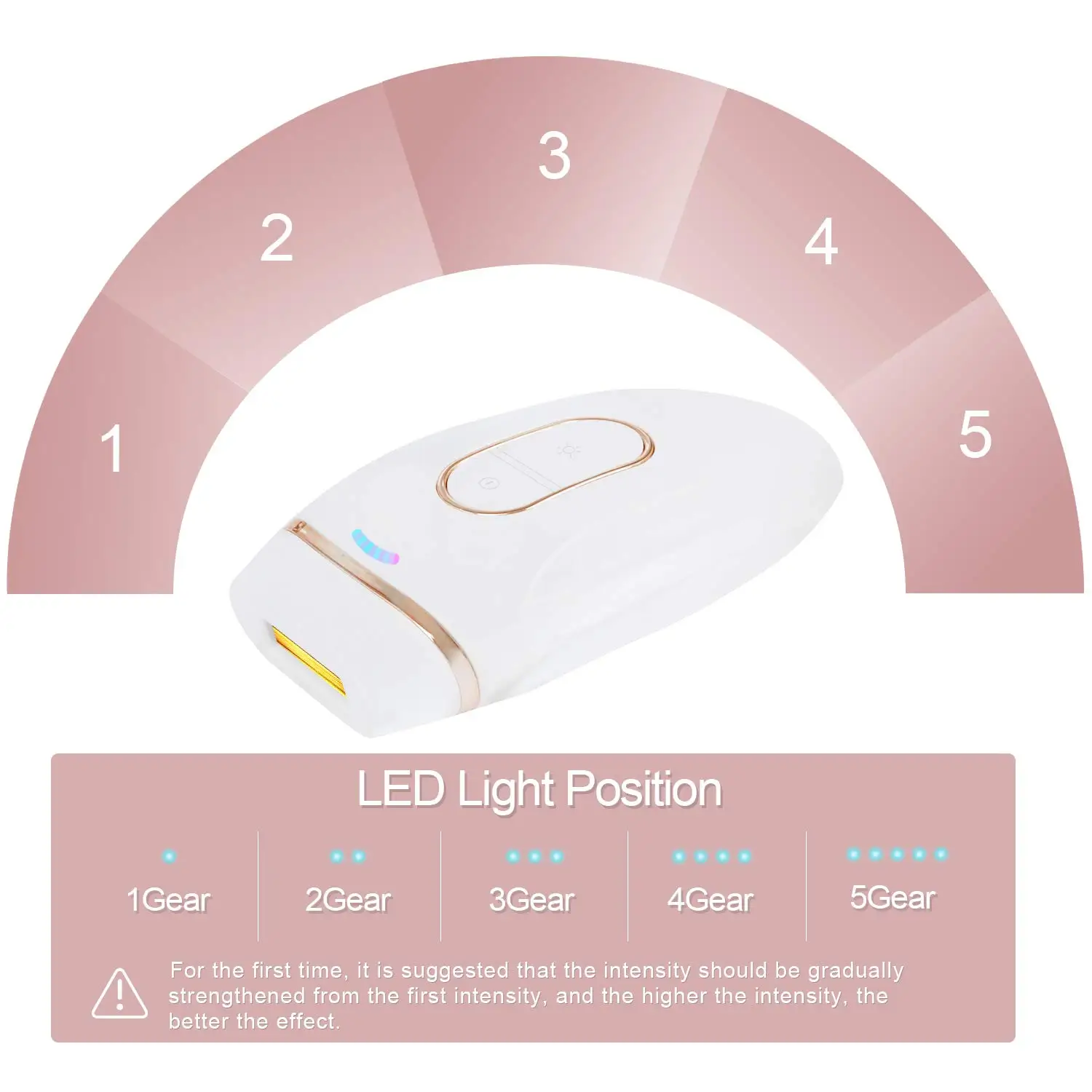 ❀【 5 регулируемых LEVELS】Это удаление волос для женщин и мужчин имеет 5 различных уровней энергии для удовлетворения различных чувствительности кожи. Рекомендуется 1-2 уровня, если впервые используется Лазерная эпиляция IPL. Наш светильник для удаления волос прост в эксплуатации и улучшает кровообращение. Средство для удаления волос IPL также может уменьшить поры и усилить эффект.