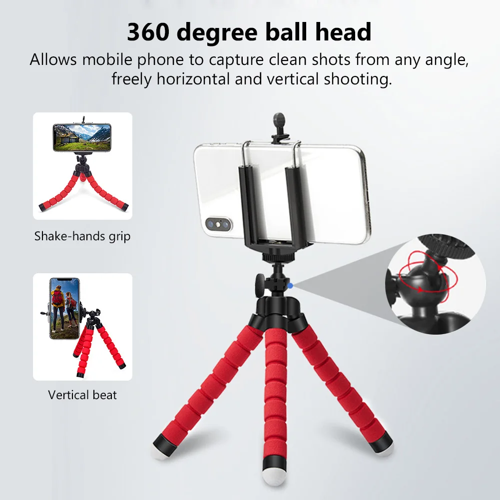 Гибкий штатив. Регулируемые ножки в стиле осьминога помогают снимать чистые снимки с любого угла даже при движении. Вы можете поместить штатив на плоскость или наклон, или обернуть его на маленькое дерево и разместить.