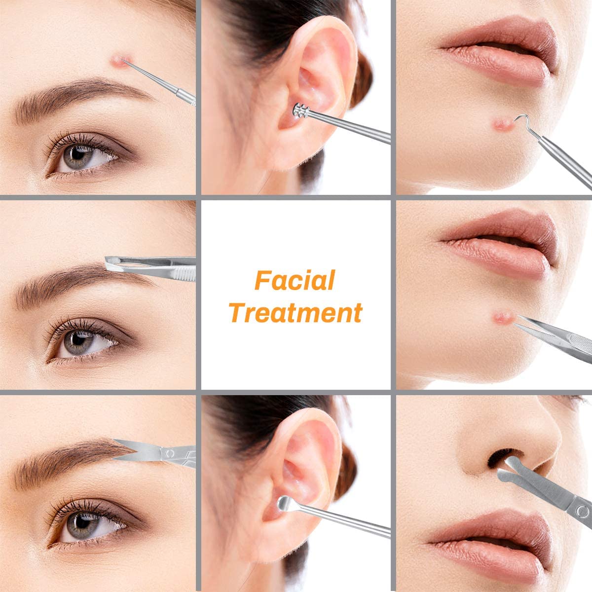 Посылка: 2 x кусачки для ногтей (обычные и скошенные) пилка для ногтей-1 шт. Толкатель для кутикулы-1 шт. пилинг-нож-1 шт. пилинг-вилка-1 шт. пинцет-1 шт. ножницы для бровей-1 шт. ножницы для носа-1 шт. ушной пилинг-1 шт. Диск для чистки ушей 1 средство для удаления угрей 1 средство для удаления прыщей 1 машинка для стрижки кутикулы ногтей 1 машинка для стрижки пальцев ног 3 ножа для удаления кутикулы 1x кольцо с двойной головкой для прыщей 1x Зажим для бровей 1x Зажим для прыщей 1x изогнутый игла акне 1 x PU Чехол
