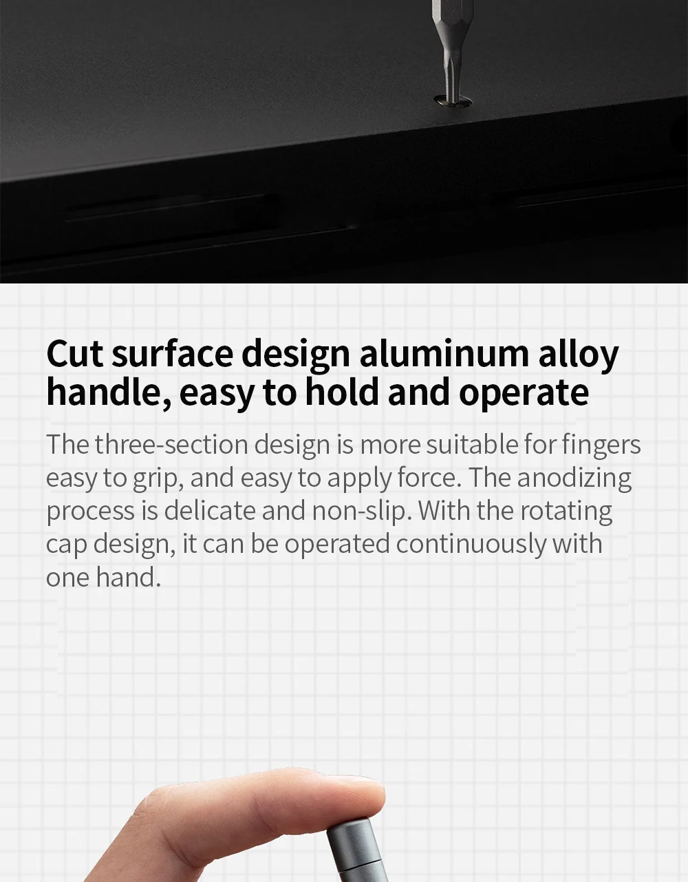Утонченный и минималистичный для большинства повседневных нужд24 высокоточных сверлаУдобная ручкаАлюминиевый корпусМагнитная головка для храненияСпецификация:(Набор отверток):Бренд: MijiaВес: 300 гС 24 прецизионной головкойМагнитная поглощающая головка