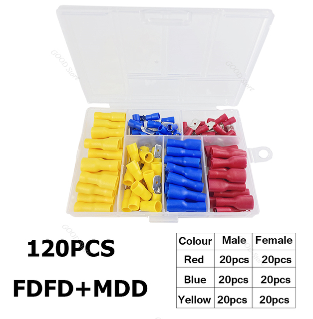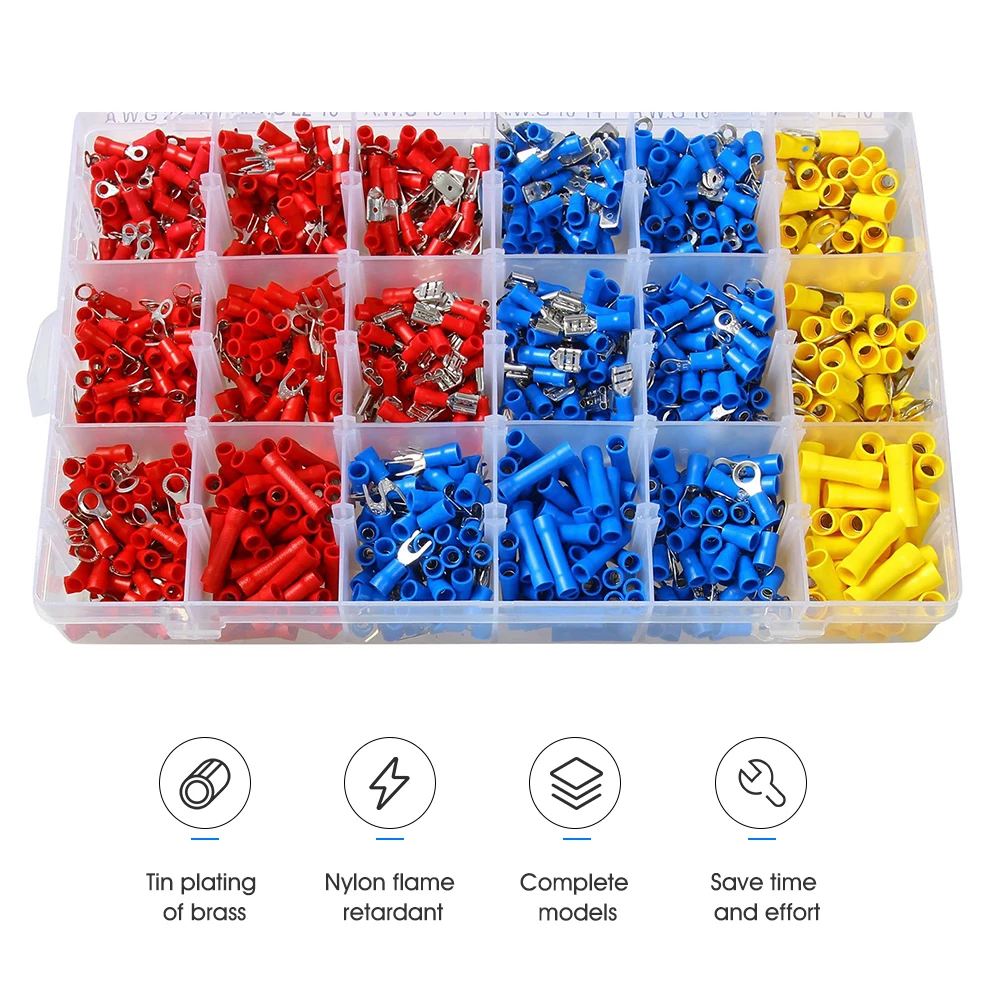 1200 шт./лот мужской женский Ассорти полностью изолированная вилка u-типа набор терминалов соединители ассортимент набор электрических обжимных колец