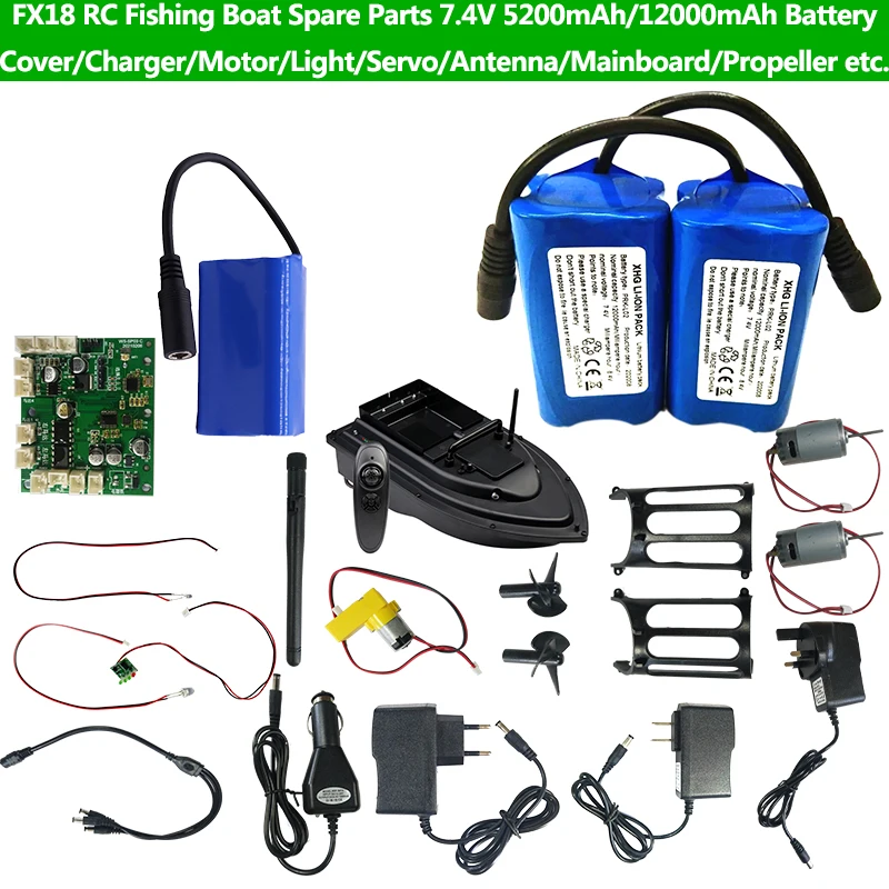 FX18 RC приманка лодка запасные части 5200 мАч или 12000 мАч батарея/зарядное устройство/приемник/крышка/пульт дистанционного управления/бункер/Мотор светильник/антенна // ручка/пропеллер/Сумка