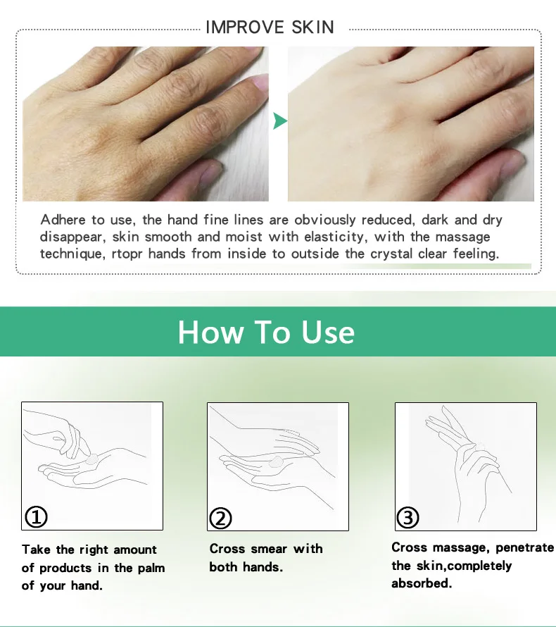 2. Нанесите соответствующее количество крема для рук и мягко массируйте до впитывания.