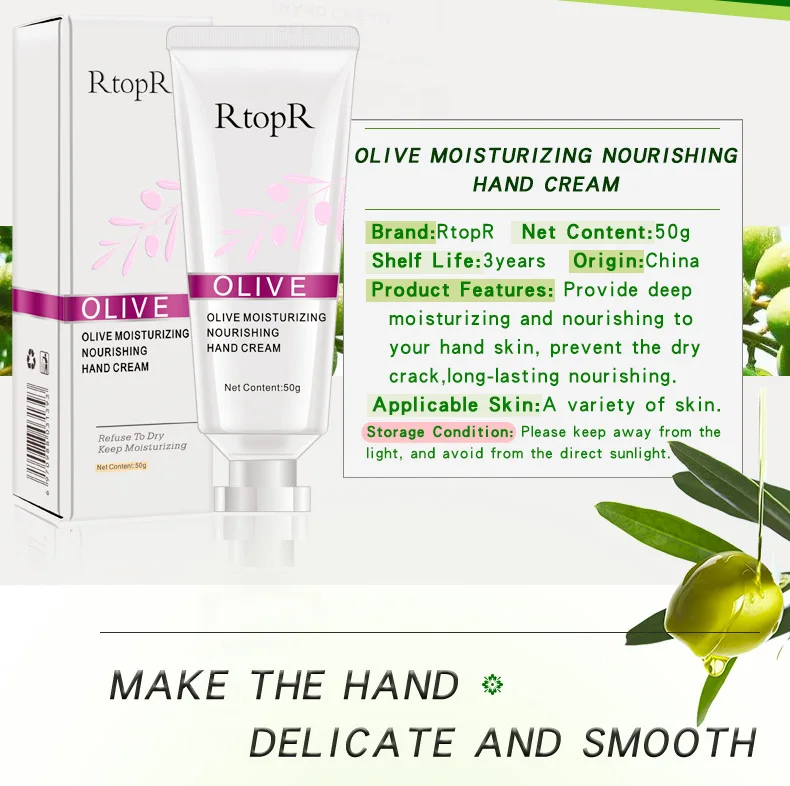 Характеристики продукта: содержит мягкое алоэ вера и свежие оливковые ингредиенты для глубокого увлажнения и питания кожи рук, гладкой мягкой и глубокой кожи, пополнения влаги, предотвращения сухости и растрескивания и питания в течение длительного времени. Он также содержит гиалуронат, чтобы мягко увлажнить и сохранить вашу кожу влажной и сбалансированной, и держать вашу кожу тонкой и гладкой в любое время.