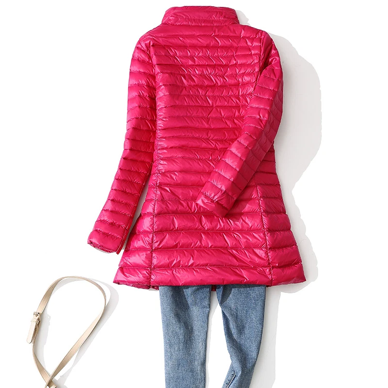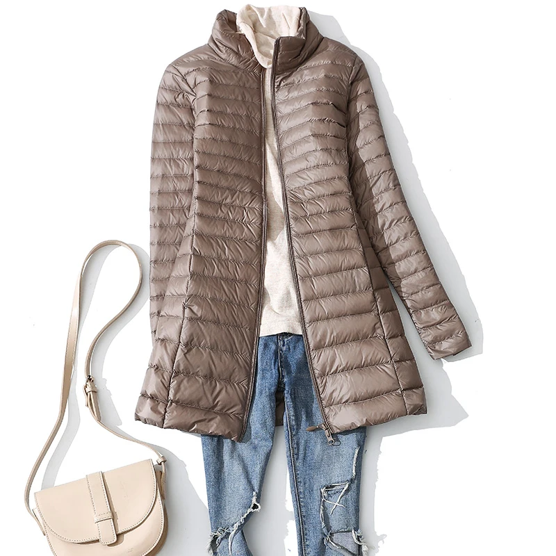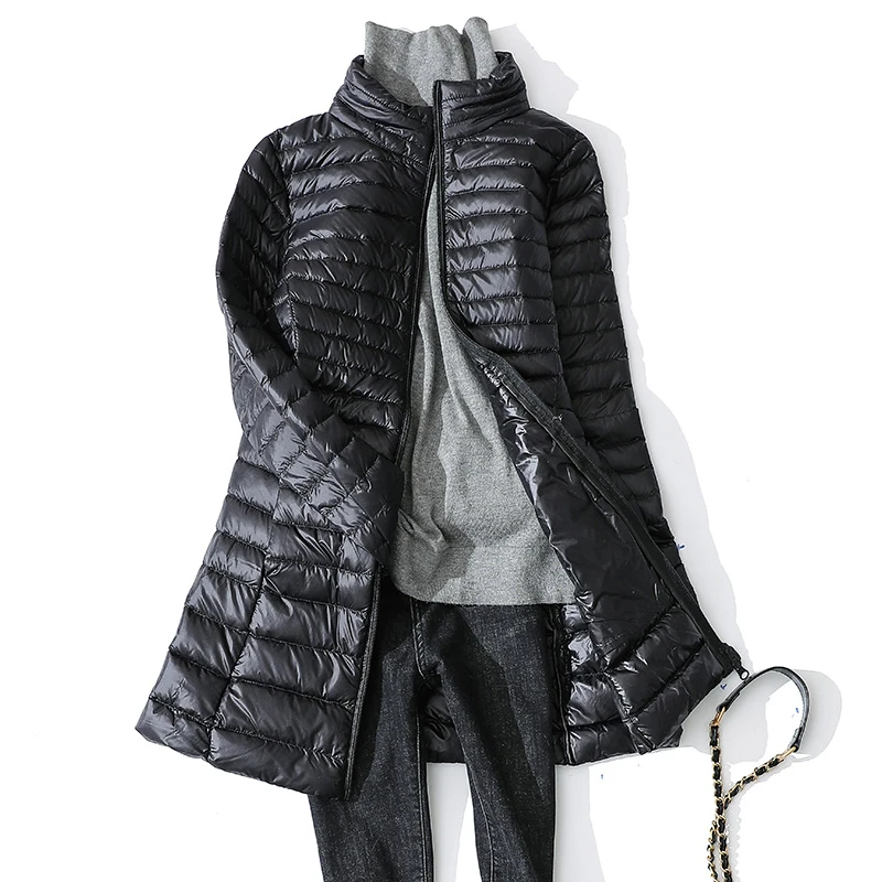 Женский пуховик на утином пуху, новинка 2022, Длинное Пышное зимнее пальто с воротником-стойкой, женские теплые стеганые парки, Сверхлегкий портативный пуховик 4XL