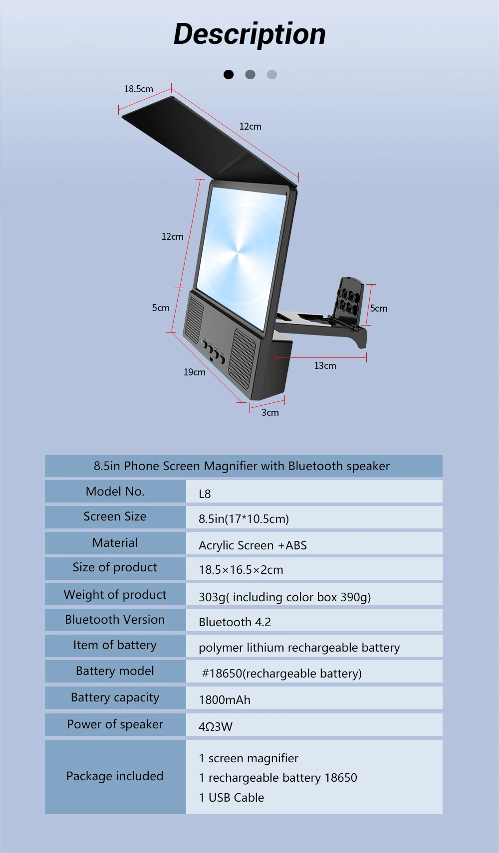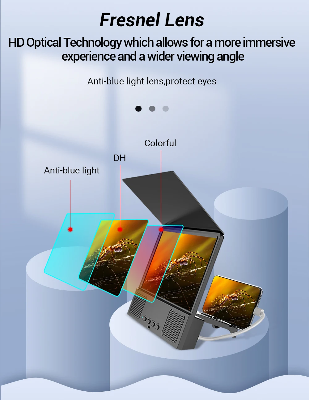 1.Мобильный увеличитель для экрана телефона с Bluetooth-динамиком, HD Акриловая линза, Экранная лупа со стереозвуком, увеличивает экран вашего телефона в 2-3 раза, чтобы избежать зрительной усталости.
