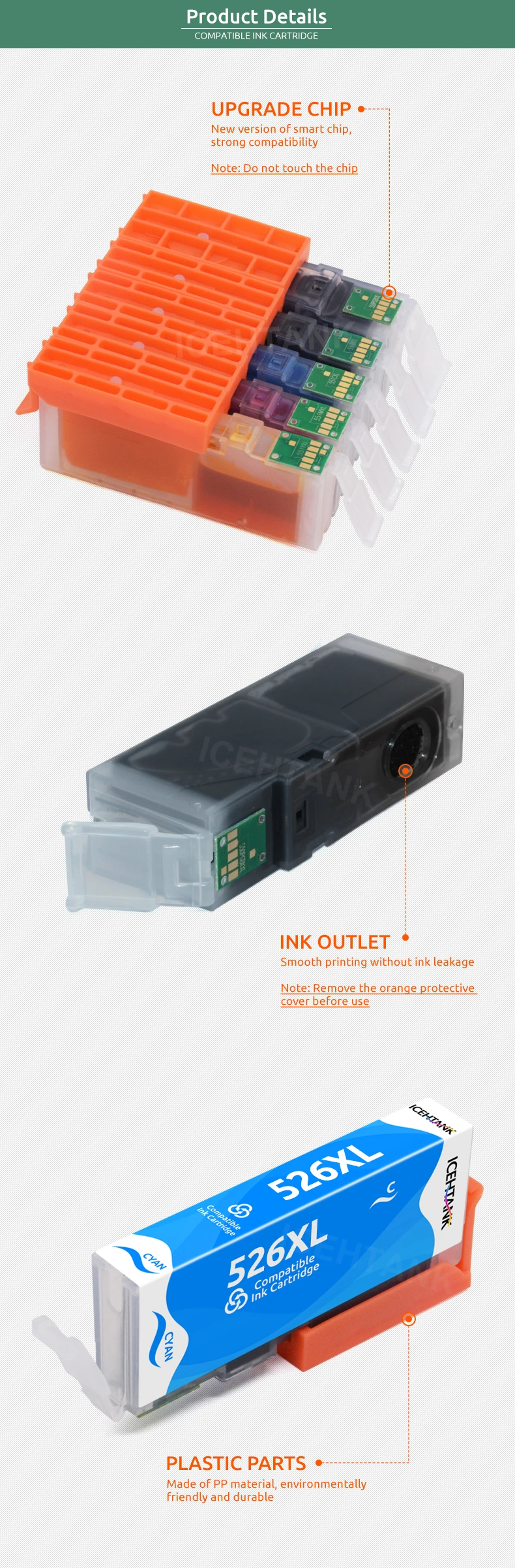 Icehtank совместимый PGI 525 CLI 526 чернильные картриджи для Canon PIXMA IP4850 IX6550