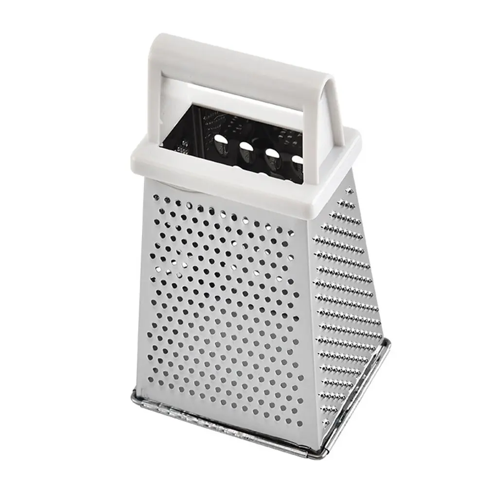 4-в-1 Терка. 4 стороны позволяют легко натереть, измельчить, очистить и нарезать практически любую еду; Использовать на овощах, фруктах, шоколаде, хлебе, сырах и практически все остальное для создания вкусных рецептов