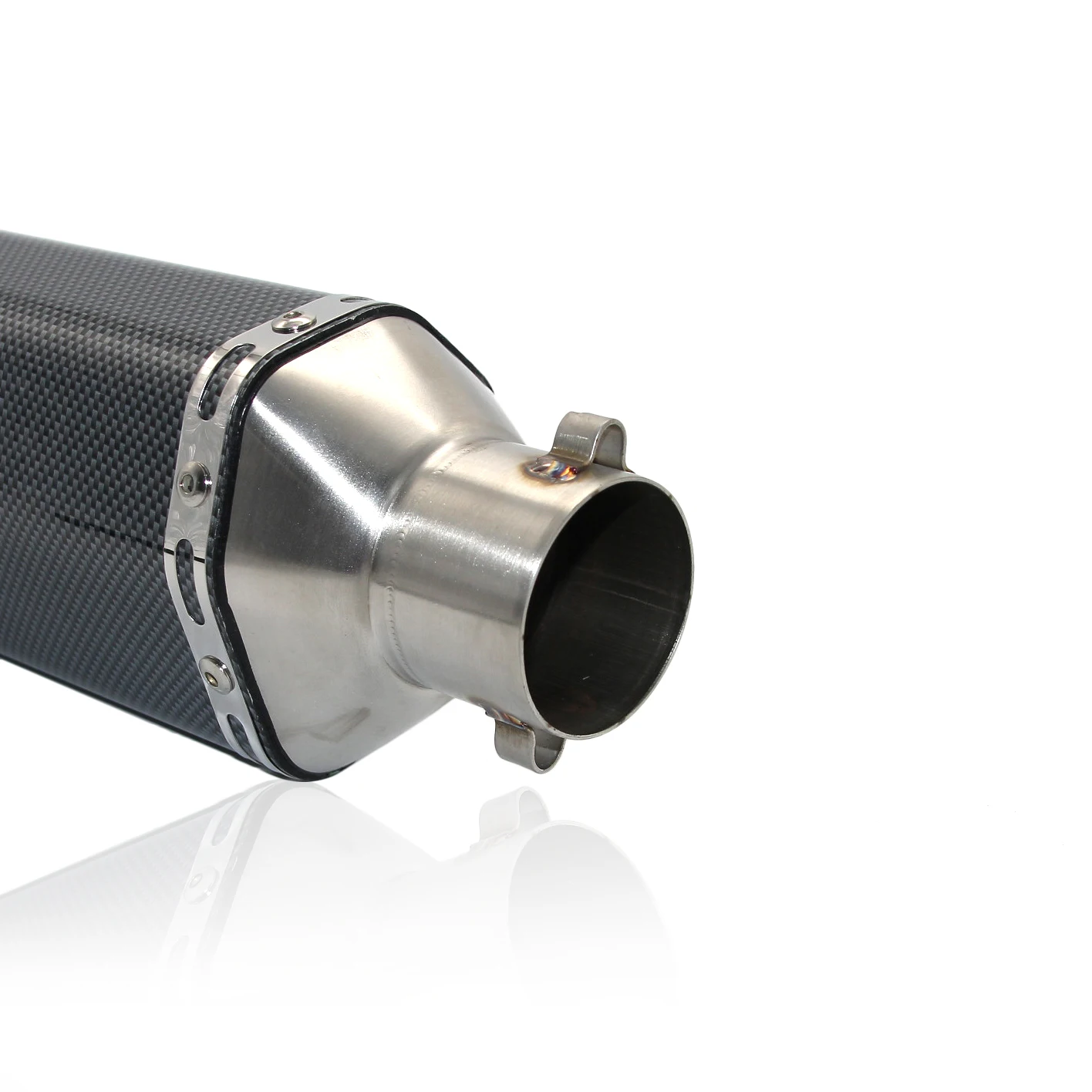 Задняя крышка и интерфейс из нержавеющей сталиПосылка включает в себя:1 шт. выхлопная труба1 шт. дБ убийца1 шт. адаптер1 шт. Зажим и Резина1 стикер2 шт. пружины и крючки