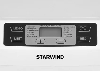 Хлебопечь StarWind sbmp1022 поможет, без каких-либо усилий, всегда иметь свежую выпечку. Устройство самозамешивание теста, благодаря программе, программе для выпечки 2. Но для других кулинарных изысков от печи есть 12 программ.