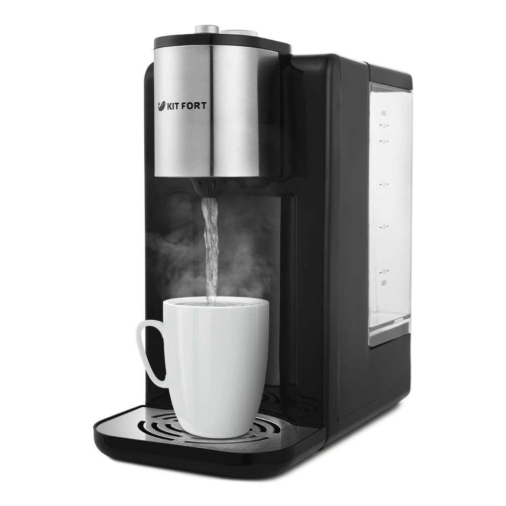 Термопот Kitfort KT-2502 служит для моментальной подачи воды заданной температуры без предварительного подогрева и ожидания. Термопот не потребляет электричество в режиме простоя. Подогрев осуществляется проточно, подача воды начинается в течение примерно 5 секунд после нажатия кнопки – столько времени занимает нагрев до температуры кипения. В отличие от чайников, термопот не нагревает лишний объём воды, в результате чего значительно экономится электроэнергия. Экономия по сравнению с обычными чайниками до 50%. Технические характеристики: - Напряжение: 220–240 В, 50/60 Гц. - Мощность: 2200–2600 Вт. - Ёмкость: 2,2 л. - Класс защиты от поражения электрическим током: I. - Размер устройства: 164х269х306 мм. - Длина шнура: 0,95 м. - Вес: 2 кг.