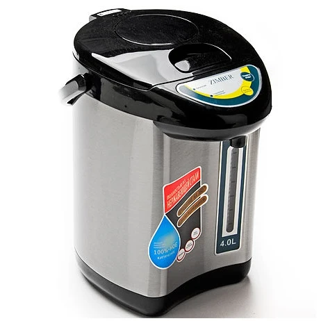 Термопот представляет собой устройство, совмещающее в себе функции термоса и чайника, так как позволяет кипятить воду и поддерживать ее горячей в течение продолжительного времени. С помощью термопота Вы сэкономите не только время, но и потребление электроэнергии. Термопот оснащен скрытым нагревательным элементом, его стильный металлический корпус имеет современный дизайн, а подвижная ручка обеспечивает его мобильность. Вы можете установить термопот у себя дома или на работе и вам не придется тратить время на подогрев воды, чтобы насладиться чашкой чая или кофе, также Вы сможете быстро приготовить детское питание для ребенка. Стильный и удобный в использовании термопот украсит любую кухню и понравится каждой современной хозяйке! Тип: чайник-термос. Материал: пластик, нержавеющая сталь. Нагревательный элемент: закрытая спираль. Объем: 6 литров. Мощность: 750 Вт. Напряжение: 220 В, 50 Гц. Индикация режима работы. Блокировка подачи воды. Вращение базы на 360 градусов. Три способа подачи воды.