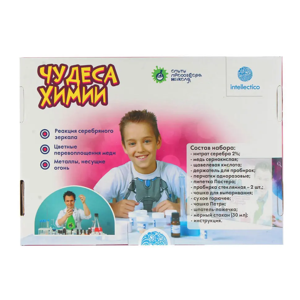 A wonderful set for experiments intellectico experiments of Professor Nicolas miracles chemistry 847. Intellectico is a Russian manufacturer who is engaged in the development and production of developing toys and children's sets for creativity and intellectual development for more than 7 years. The set is made of high-quality domestic components and has passed all laboratory tests. Will be a wonderful gift that will help develop creative and independent thinking in children.