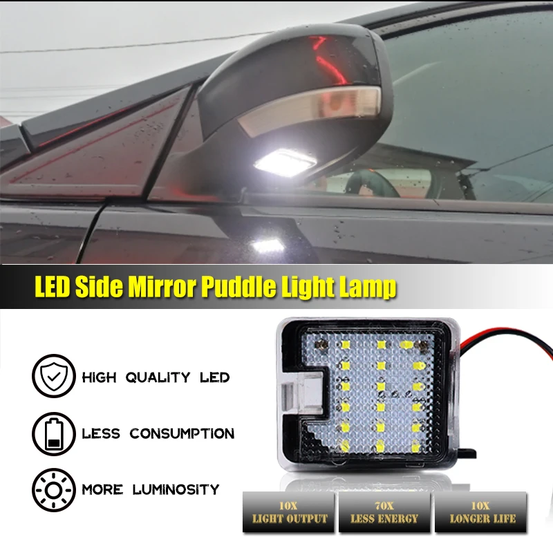 Direct replacement: Plug and Play Built-in CAN-bus controller, complete no onboard computer error. Voltage: 12V Surface Finish: Plastic Cover and SMD LEDs LED Number: 18piece (per light) Placement on Vehicle: Under Mirror Puddle Light Package: 2pcs Led Puddle light
