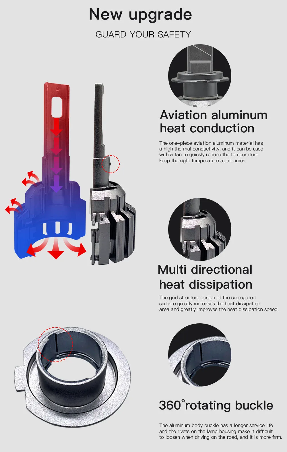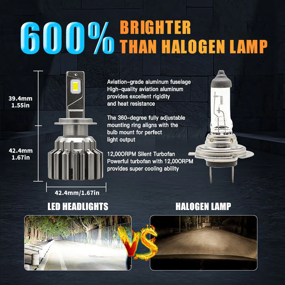 4. Простая установка Plug-N-Play: Модернизированный затонувший высокоскоростной бесшумный медный охлаждающий вентилятор большого размера делает установку более удобной, безопасной и лучшей теплоотдачей. Все-в-одном конверсионный комплект, такой же, как автомобильные оригинальные галогенные лампы, подключи и работай, с регулируемым монтажным воротником для коррекции рисунка луча.