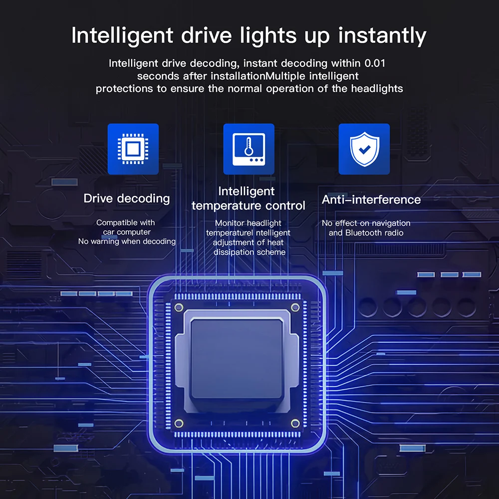 1.Can-Bus Ready Error Free встроенный системный декодер EMC для защиты от помех, от мерцания, без ошибок, подходит для автомобилей SUV Truck, чтобы избежать мерцания, предупреждающего сообщения или радиопомех.