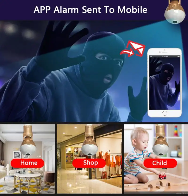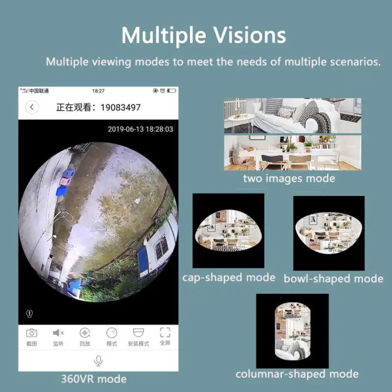 Камера Безопасности 1,360 градусов: 360 градусов панорамная камера, которая может дать ему полное покрытие всей комнаты для наблюдения за каждым углом вашего дома и офиса и горизонтальной 180 градусов вручную регулируемый кронштейн + левый и правый 360 градусов без слепых зон!