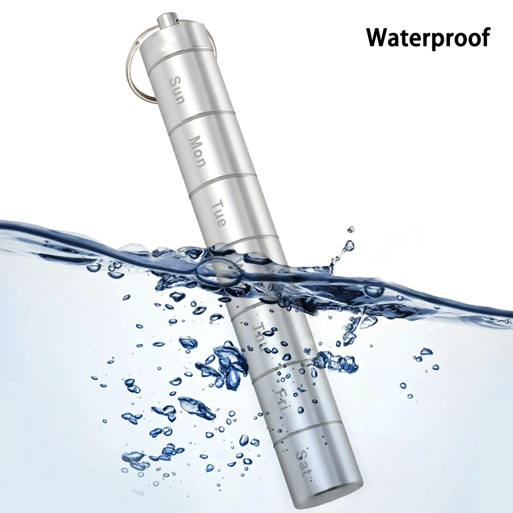 * 4. Портативный и регулируемый: Этот контейнер для таблеток разработан с кольцом для ключей, удобен для подвешивания на стене, сумке, багаже или рюкзаке. Эта водонепроницаемая коробка для таблеток отлично подходит для путешествий, пеших прогулок, рыбалки, велоспорта, игры в гольф и других видов активного отдыха. Регулируемый 7 независимых отсеков, его можно использовать как органайзер от 1 до 7 дней.