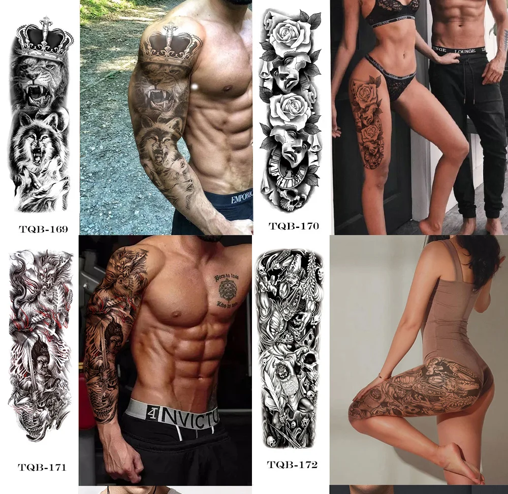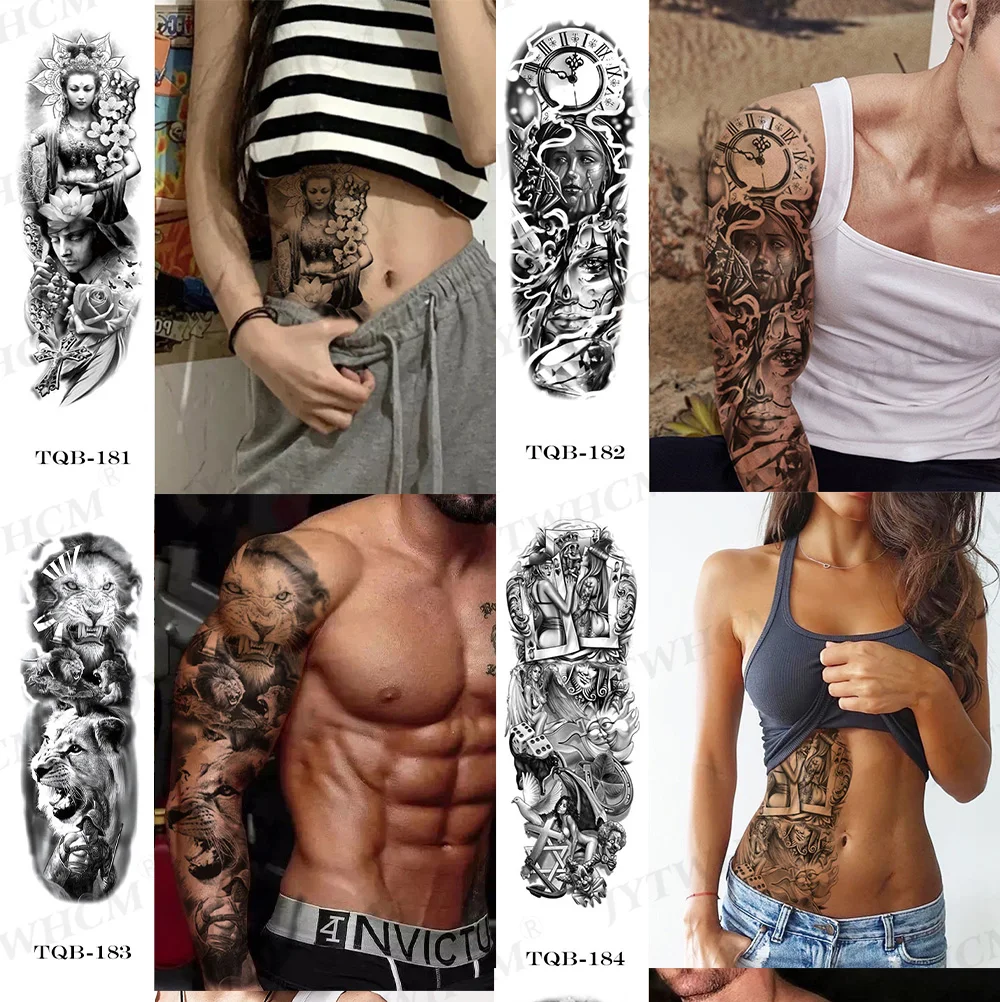 Водостойкая Временная тату-наклейка с черепом тигра на рукавах, боди-арт «Бог Монстр Племя», большая рука, искусственная тату для женщин и мужчин