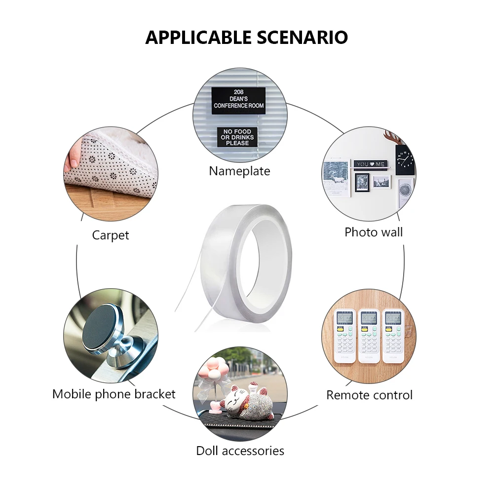 Легко использовать и резать, идеально подходит для любого случая, например, наклеивать фотографии и плакаты, фиксировать Ковровые Коврики, наклеивать предметы на стену, прикрепить телефон или планшет к любым поверхностям. Идеальная клейкая лента для декора кухонной стены.