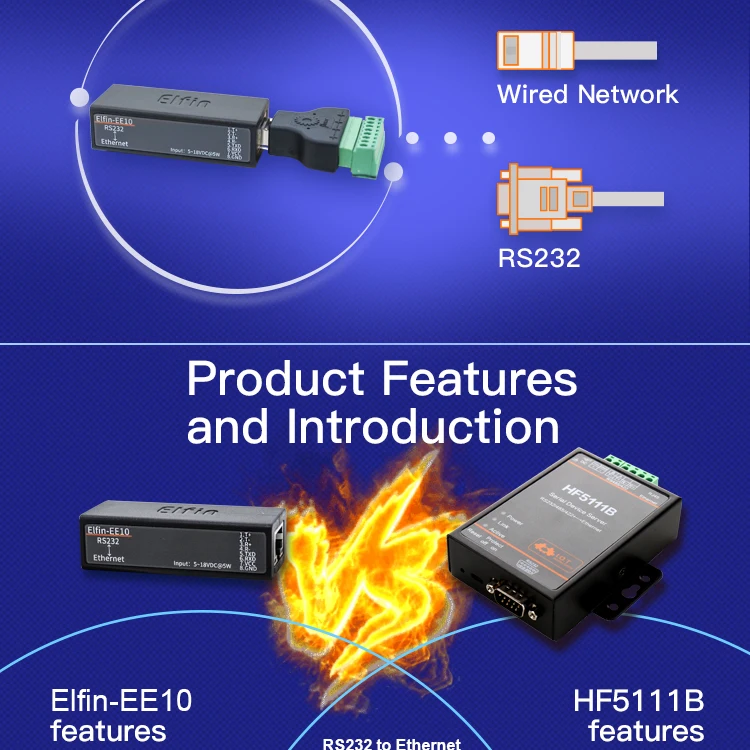 Серия Elfin-EE10 поддерживает RS232 к Ethernet, Elfin-EE10 блок является полным решением для последовательного порта устройства подключения к сети. Это мощное устройство поддерживает надежную и проверенную операционную систему, хранящуюся во флэш-памяти, встроенный веб-сервер, полный стек протоколов TCP/IP и шифрование на основе стандартов (AES).