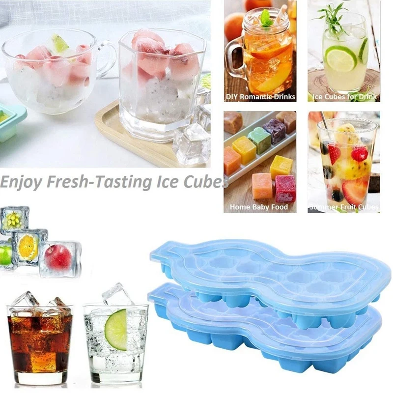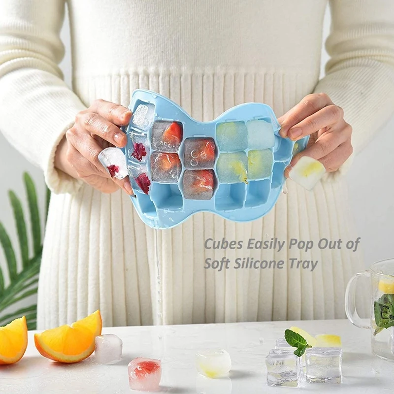 [Высокое качество] форма силиконового лотка для кубиков льда не является легкой для возраста и может непосредственно держать еду. Хорошая гибкость, вращение влево и вправо, кубики льда будут ослабляться автоматически.