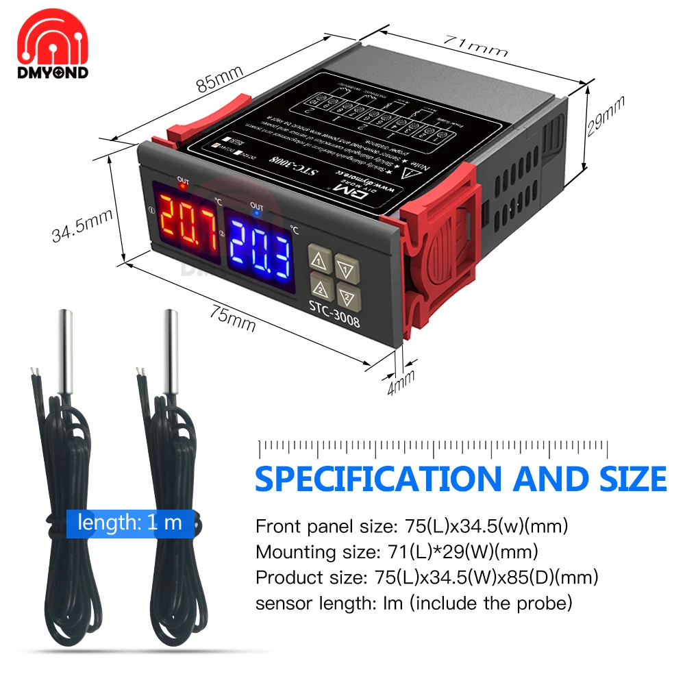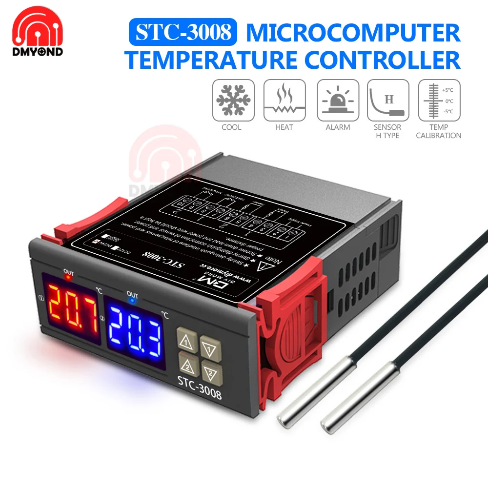 STC-1000 STC-3008 LED Digital Temperature Controller Thermostat Thermoregulator Incubator DC 12V 24V AC 110V 220V DC 12V-72V