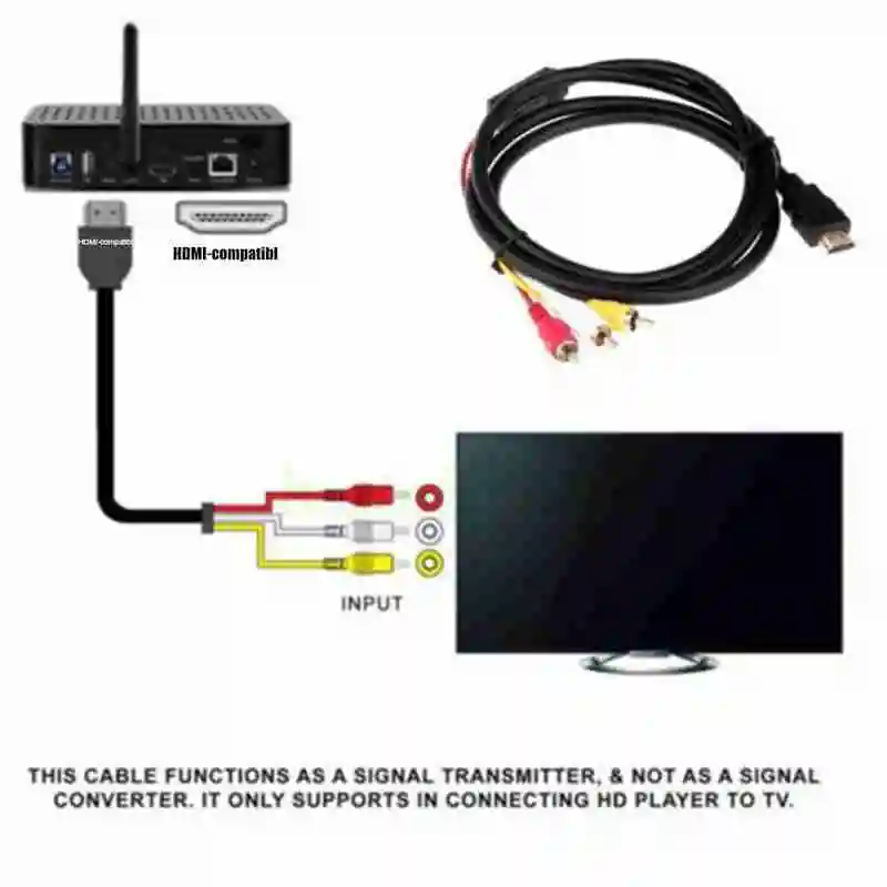 The HDMI-compatible to RCA cable is for connecting and transmitting the signal from the HDMI-compatible compatible port to the RCA port. High-quality HDMI-compatible RCA cable, suitable for high-definition TV, home theater system, and all other HDMI-compatible-RCA supported equipment compatible.