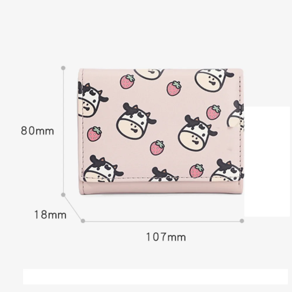 Текстура: ПУ Рисунок: мультфильм аниме Цветовая классификация: коровья кожа из искусственной кожи Стиль бумажника: короткий кошелек Пол: женский Популярные элементы: печать Цветовая классификация: корова розового и белого цвета, корова черного и белого цвета, теленок синего цвета, теленок розового цвета с клубникой Внутренняя структура: держатель счета Материал подкладки: полиэстер
