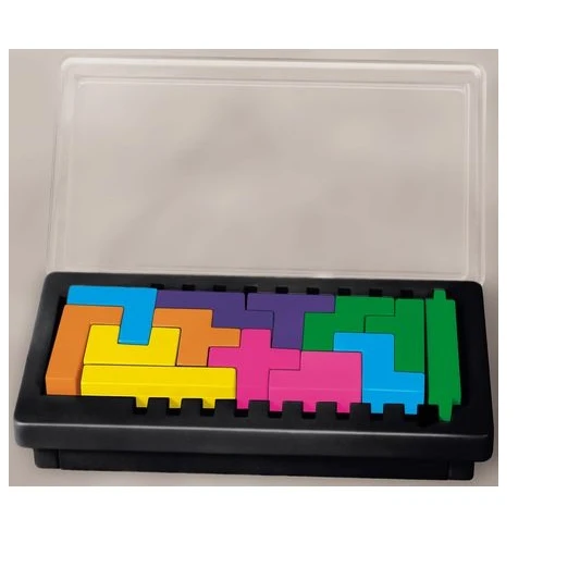 Под силу ли вам заполнить указанными в задании пентамино прямоугольное поле? С тремя элементами справится каждый, но над задачей из 8 элементов вам придётся как следует подумать. Очень увлекательная головоломка для 1-го или 2-х участников, развивает пространственное мышление. Разные уровни сложности (от 3-х летних детей до взрослых гениев), большой буклет заданий. Универсальная игра, настоящий хит! Всего можно найти 500 предлагаемых комбинаций, однако в общей сложности возможны 36057 комбинаций. Количество игроков: 1. Возраст игроков: от 8 до 99 лет. Время игры: 5-60 минут. Состав игры: 12 пентамино, 1 игровое поле с выдвигающимся ящичком для неиспользуемых пентамино, 1 барьер для ограждения игрового поля, правила игры на русском языке, брошюра заданий, коробка.
