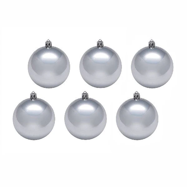 Отличное новогоднее украшение на елку в виде шара. Ваша зеленая красавица с такими украшениями будет выглядеть оригинально и современно. А вы, глядя на нее, будете ощущать чудесное новогоднее настроение. В наборе: 6 штук. Размер: 6,0 см. Цвет: серебро (блестящий).