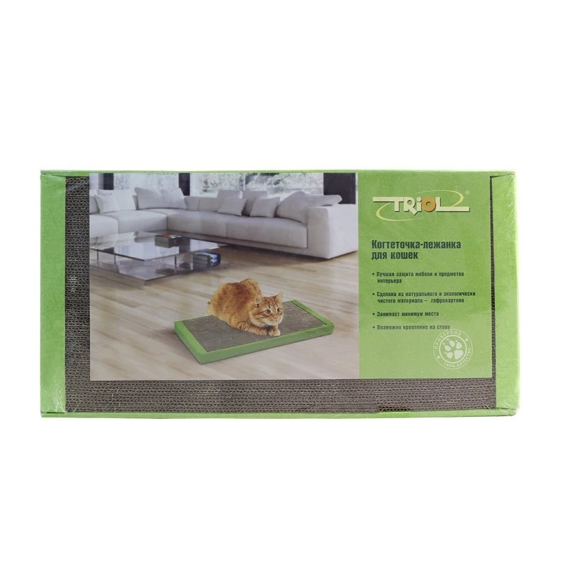 Когтеточка-лежанка для кошек изготовлена из гофрокартона. В комплекте - пакетик с травяной смесью. Упакована в термоусадочную пленку. Размеры: 500x240x35 мм. Материал: картон, травяная смесь.