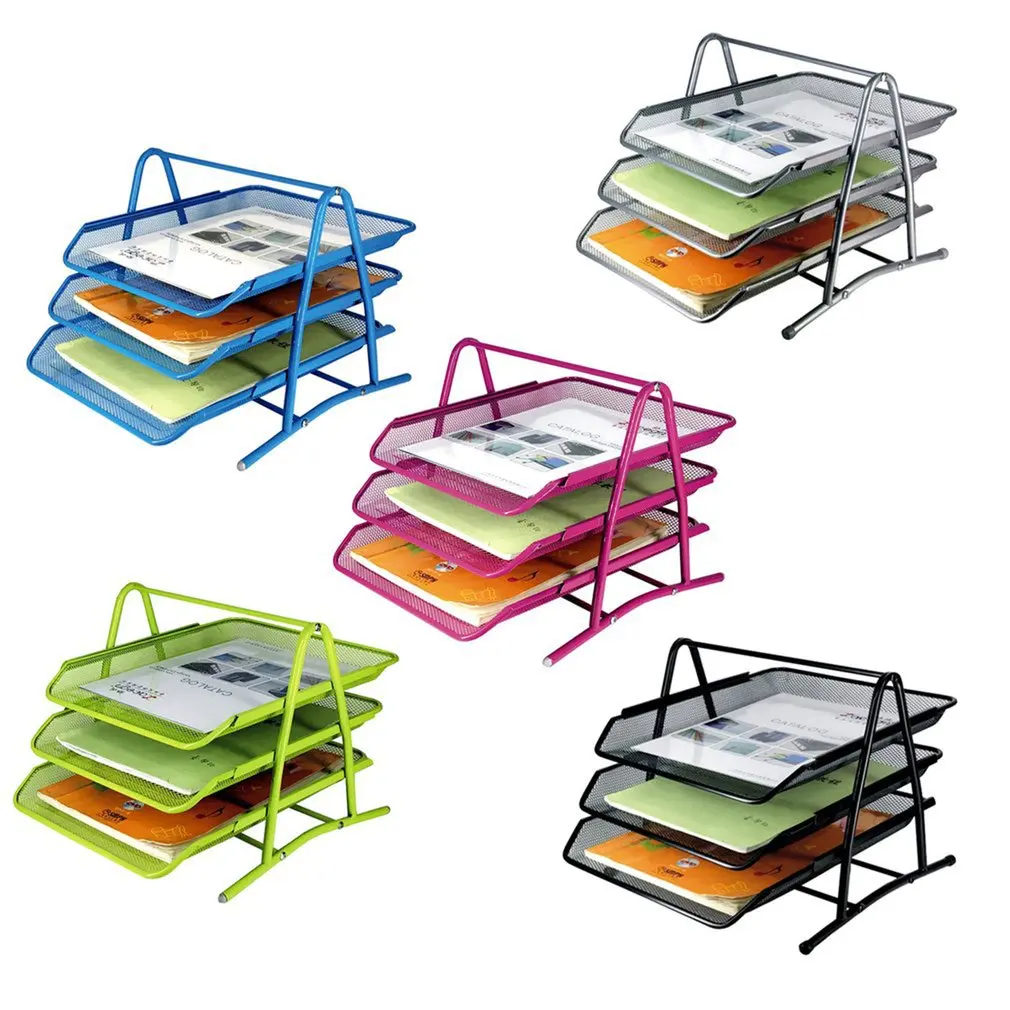 Особенности: 1. Держатель для файлов изготовлен из металла, имеет прочную и компактную структуру, простой и благородный внешний вид и высокую грузоподъемность. 2. Геометрический дизайн сетки, достаточно места для файлов, не легко накапливать пыль. 3. Конструкция подушечки для ног может предотвратить скольжение и предотвратить появление царапин на столешнице. Легко собирается и прост в использовании. Описание: Эта стойка имеет трехслойный дизайн, который может помочь хранить документы, бумаги, тестовые бумаги или учебники, подходит для офиса и дома, Характеристики: Размер: 30*28*27 см Высота одного слоя: 6 см Стиль: три слоя Материал: металл Посылка включает в себя: 1 * органайзер для файлов