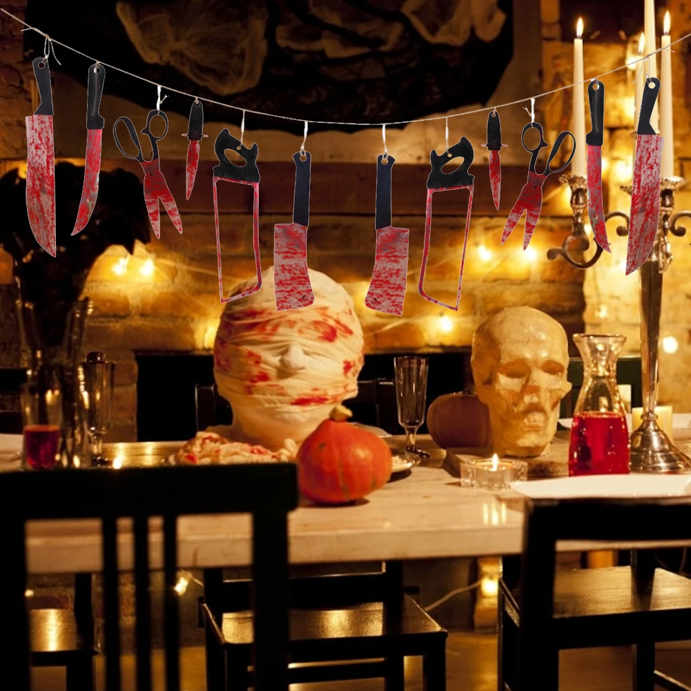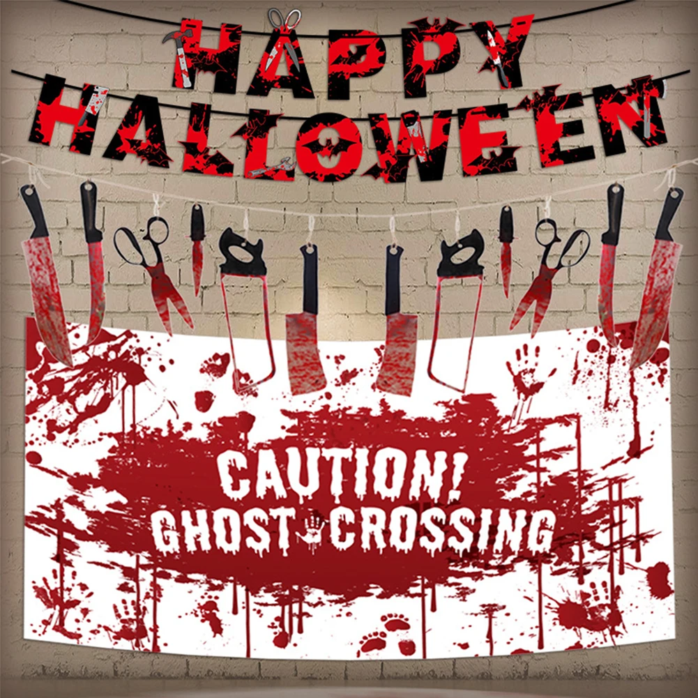 * 2. Посылка поставляется с 1 баннером HAPPY HOLLOWEEN и 1 окровавленным ножом и 1 постером. Или вы можете купить один отдельно.