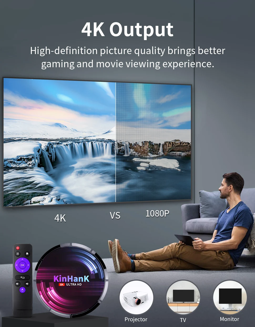 HD выход поддерживает дисплей 4K ultra-high-definition, изображение очень выразительное. Дисплей 4K ultra-high-definition делает экран игры более совершенным, а эффект просмотра видео и игровой эффект идеальны.