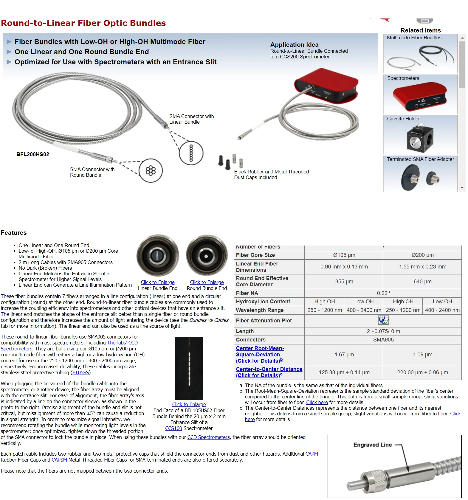 Круглый-к-линейный волоконно-оптический пучок кабеля, 7x200µm волокна сердечника, Low-OH,1 м, чистый кремнезем металлический наконечник 6,0 мм бронированный волоконный патч-корд