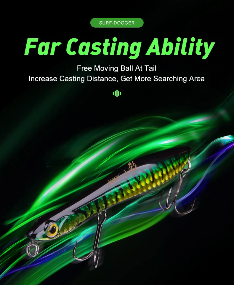 5. Притяжение шума-когда приманка движется в воде, свободный движущийся шар с шумом сталкиваются с телом, чтобы производить звук для привлечения рыбы.