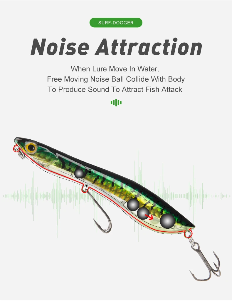 Королевство прибой-Доггер рыболовные приманки 95 мм 110 мм плавающие и тонущие жесткие приманки длинные отливки хорошее действие карандаш приманка Поппер воблеры