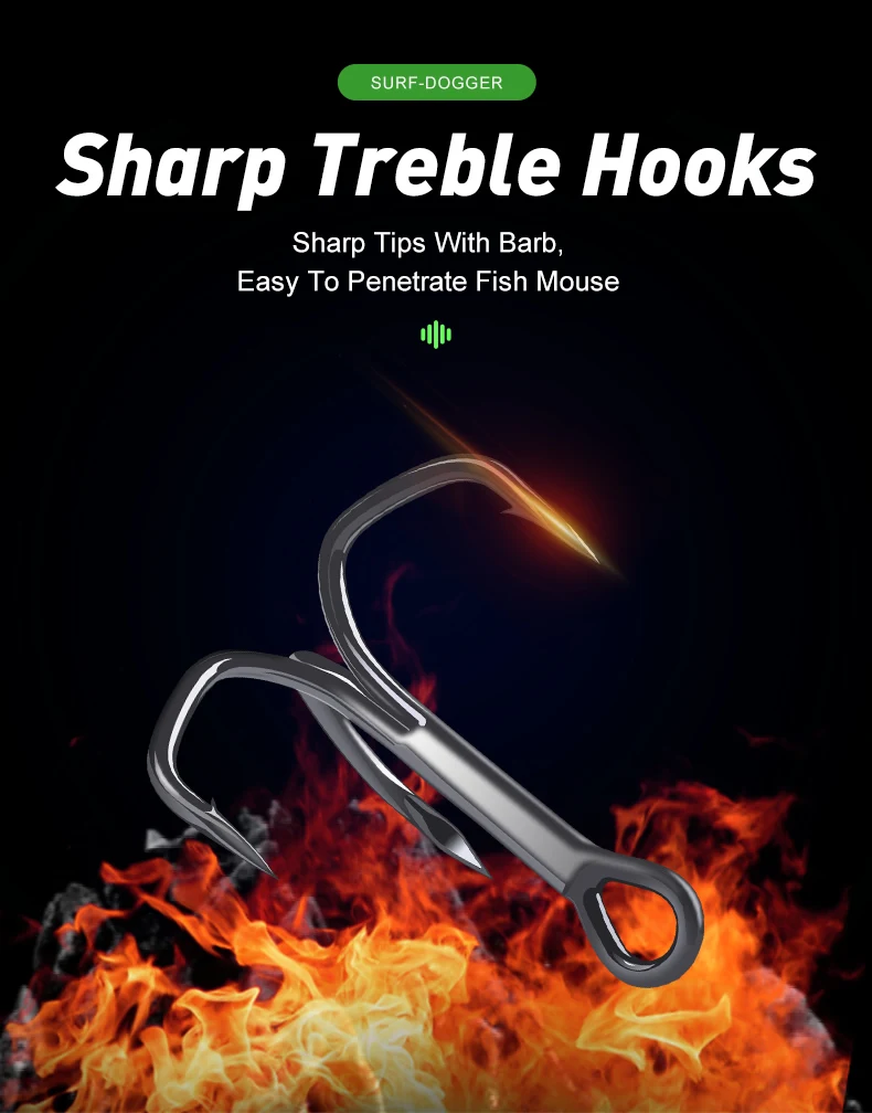 8. Острые тройные Крючки-острые наконечники с косой, легко проникают в рыбную мышь.