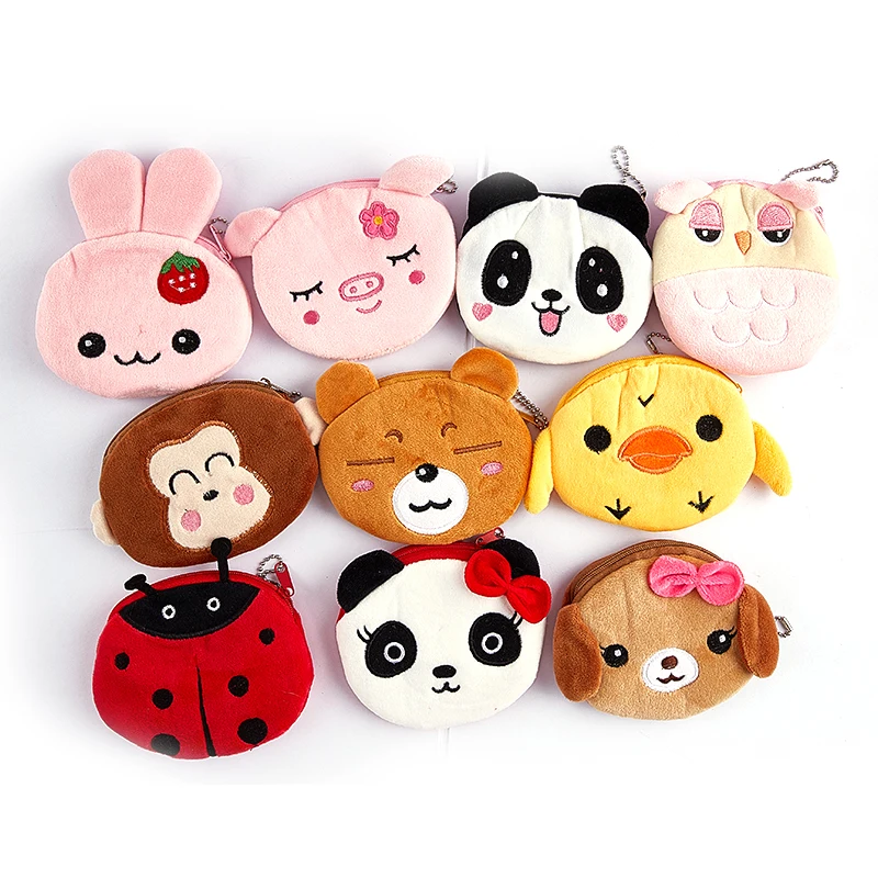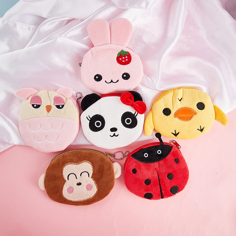Мягкий плюшевый мультяшный женский кошелек для монет с милыми животными на молнии, Детский кошелек для монет для девочек, usb-кабель, гарнитура, мини-сумка, кошелек для ключей