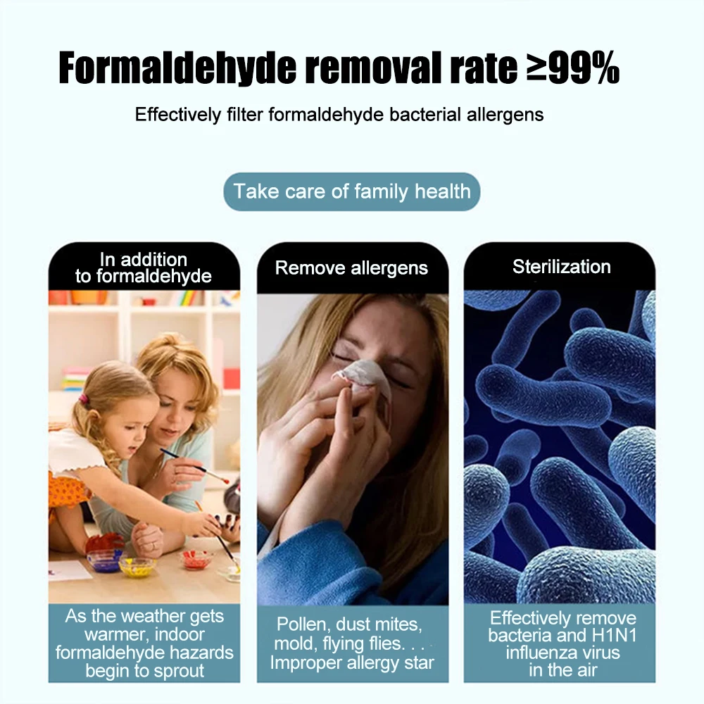 2. Непрерывное использование может эффективно очищать формальдегид, вторичный дым, пыль и другие запахи и продолжать заботиться о вашем здоровье