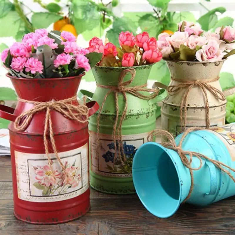 2 великолепные декоративные элементы стола: Эта французская ваза для цветов с веревкой уникального дизайна, которая наполнена любовью. Покажите ее пустой или как вазу для хранения сушеных веточек или цветов. Деревенские железные банки станут идеальным украшением для вашего стола.