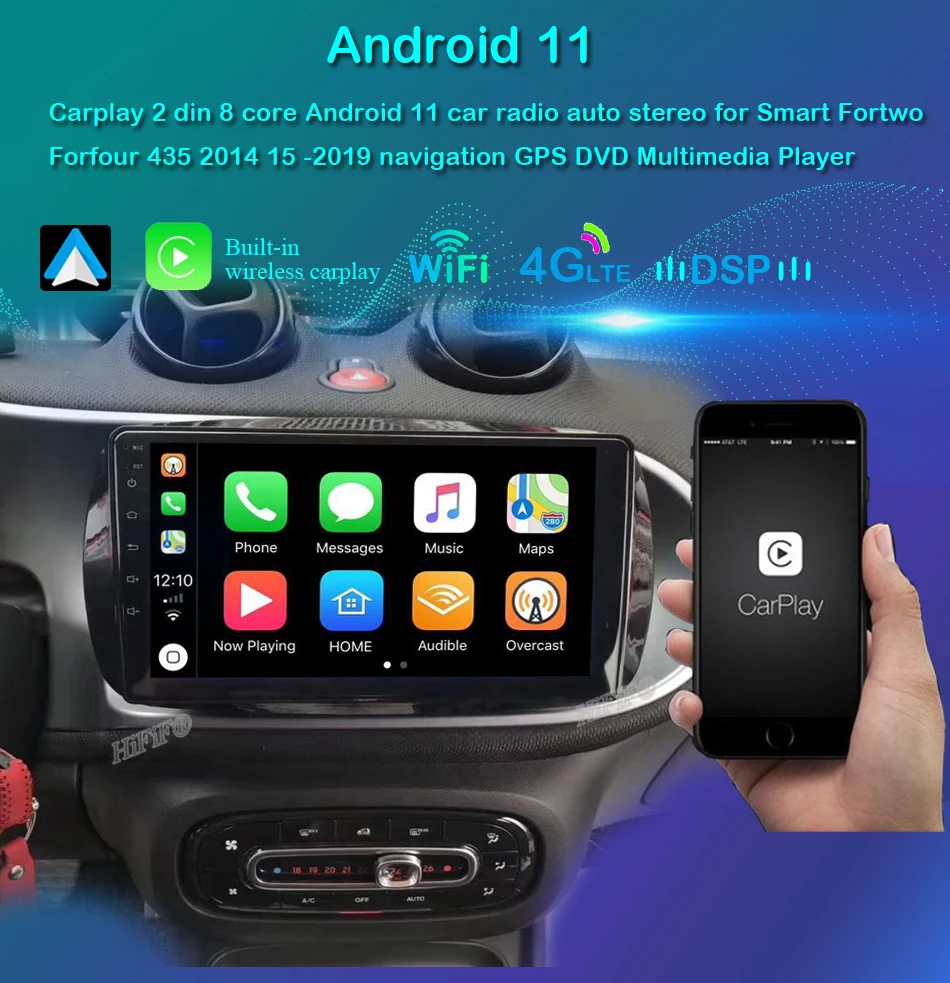 Carplay 2 din 8 ядер Android 11 автомобильное радио авто стерео для Smart Fortwo Forfour 435 2014 15 -2019 навигация GPS DVD мультимедийный плеер