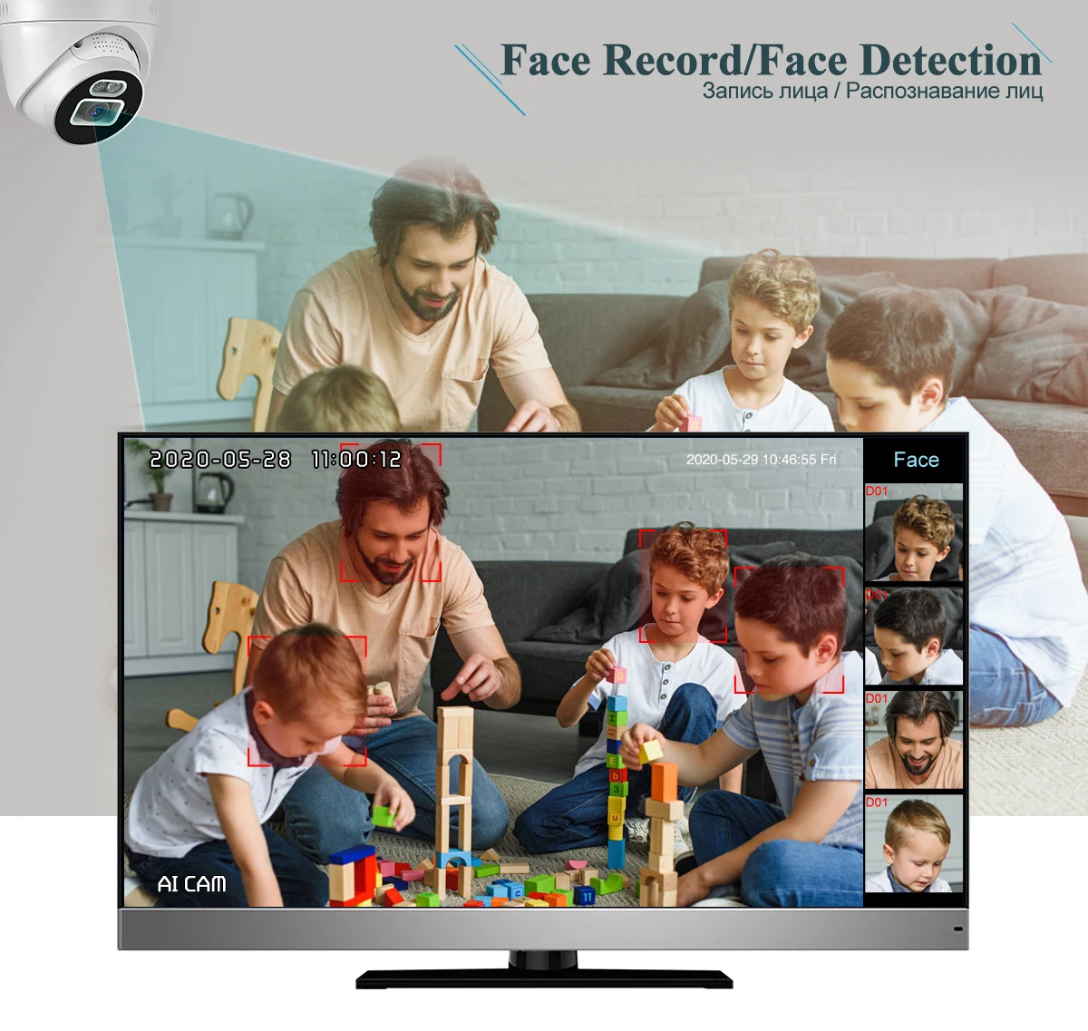Функция записи распознавания лица: при обнаружении лица NVR сохранит кадры на жестком диске, не пропуская ни одного человека, тем самым улучшая точность оповещения.