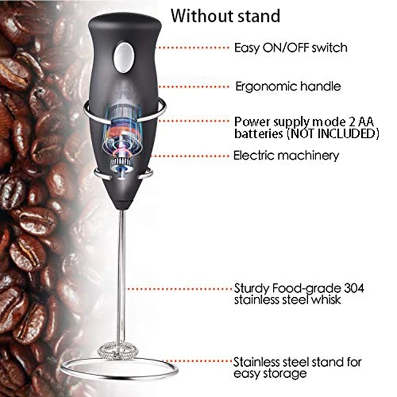 Мощный двигатель 19000 об/мин: мощный высокоскоростной Электродвигатель с высоким крутящим моментом имеет достаточно мощности для производства вспененного молока. Пищевой 304 венчик из нержавеющей стали. Низкий уровень шума и более прочный.